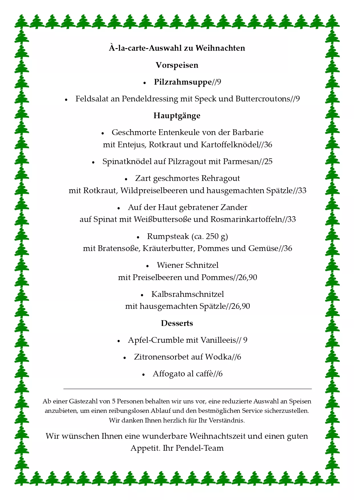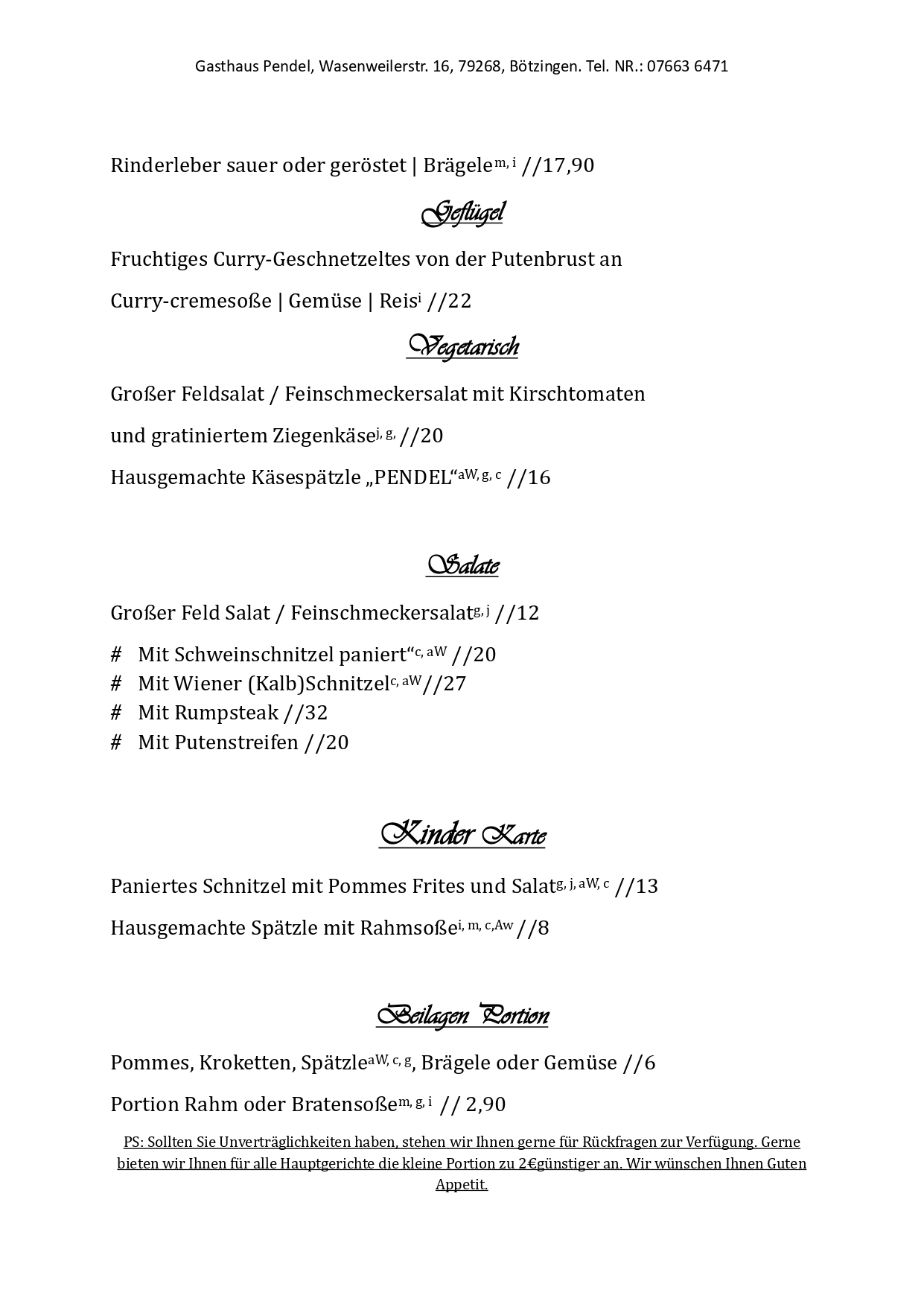 Speise Karte